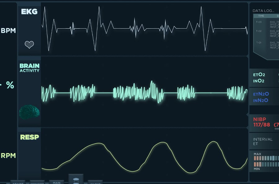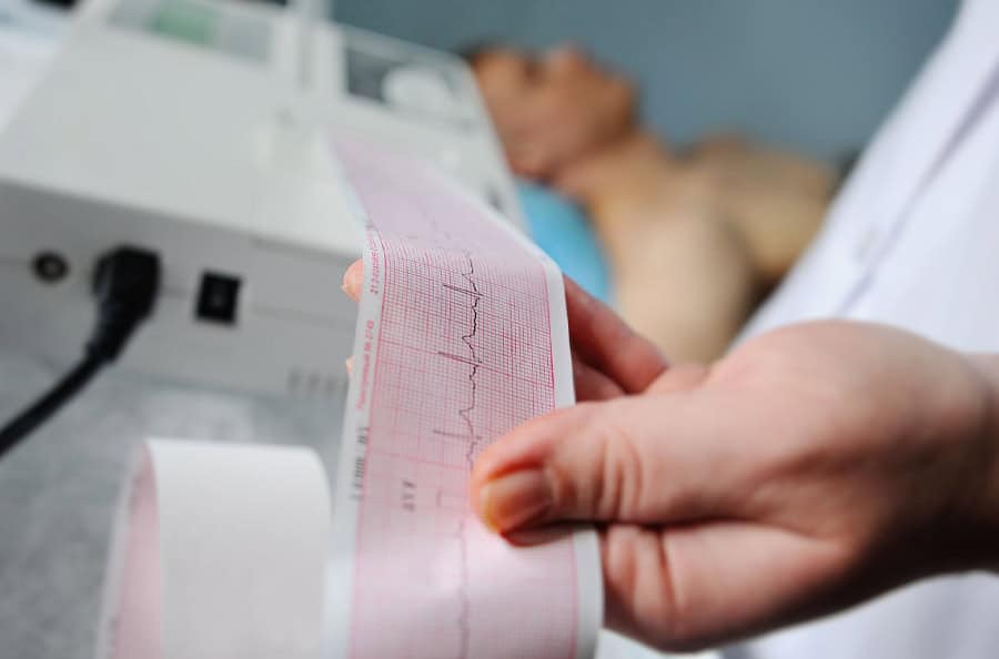 Examen no invasivo que registra la actividad eléctrica del corazón a través de electrodos colocados en la piel del tórax, brazos y piernas.